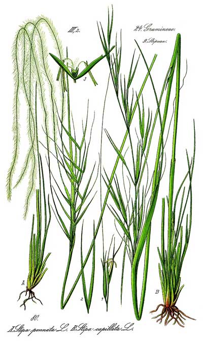 | Offiziell | Das Bayerische Federgras (Stipa pulcherrima ssp. bavarica) gehört zur Familie der Süßgräser. Es kommt weltweit nur an einem Standort vor, an einem vollsonnigen Steilhang bzw. Felsen im Donautal. Die Pflanze wird 0,3 bis 1 m hoch und blüht von Mai bis Juni. Sie ist gut an ihren sehr langen Grannen zu erkennen. Das Bayerische Federgras ist vom Aussterben bedroht und streng geschützt. |