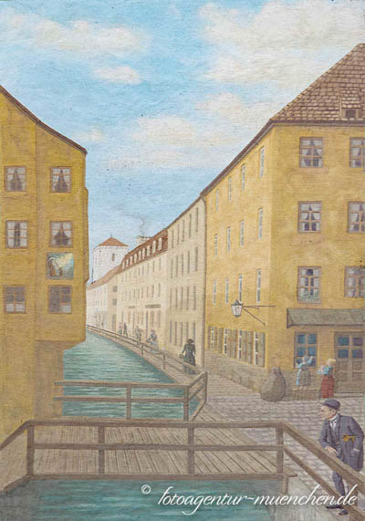 Thal südlich abzweigend, letzteres mit der Westenriederstraße. Früher ein enges Gäßchen, resp. ein Steg, an dem nun überwölbten Isarkanal, welcher unter der ehemaligen Hochbrücke durchläuft, war derselbe durch ein Drehkreuz oder, wie die Leute sagten, durch ein .,Radl« für Fuhrwerke aller Art abgesperrt. Jetzt ist die bezügliche Strecke hübsch eingedeckt und gepflastert, so daß die Bezeichnung einem Fremden unverständlich bleibt; dagegen erinnern sich die meisten der Einheimschen noch des einstigen Bretterbodens in dem Gäßchen. In der Herdstättbeschreibung von 1731 findet sich hier das Badergewerbe vertreten. Hübner schreibt in seiner Beschreibung I, 271: »Man sieht in diesem Arme der Isar mehrere Mühlräder« und will davon die Benennung »Radlsteg« ableiten.