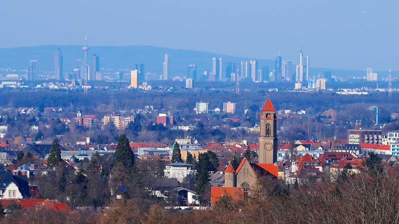 Bildrechte: Grffine, Pauluskirche Darmstadt mit Skyline von Frankfurt, CC BY-SA 4.0