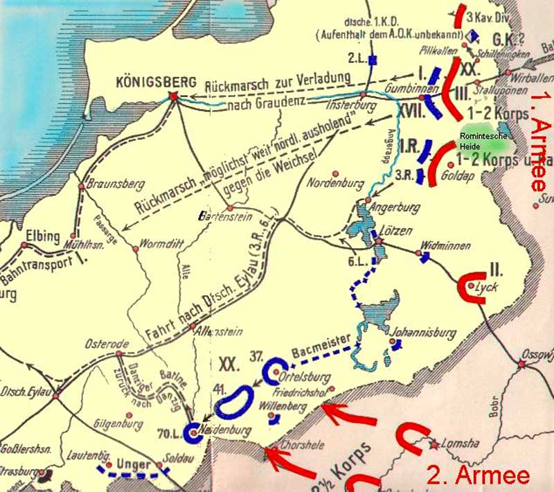 Bildrechte: Hardy.D at German Wikipedia (Original text: Eckhardt Dirks), Gumbinnen Rueckzug, als gemeinfrei gekennzeichnet, Details auf Wikimedia Commons