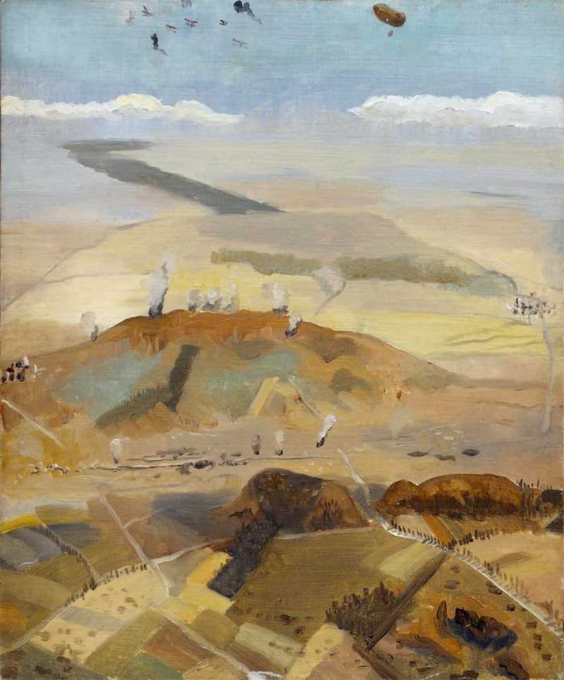Bildrechte: Richard Carline creator QS:P170,Q18530766, Kemmel Hill Seen from an Aeroplane Art.IWMART6343, als gemeinfrei gekennzeichnet, Details auf Wikimedia Commons