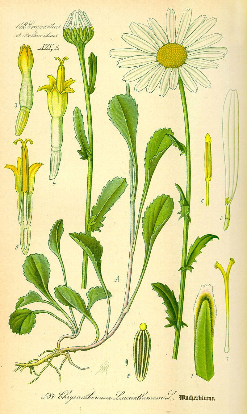 Bildrechte: anonym, Illustration Chrysanthemum leucanthemum0, als gemeinfrei gekennzeichnet, Details auf Wikimedia Commons