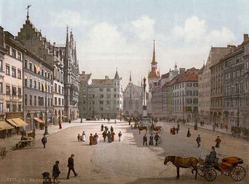 Bildrechte: Unknown author, Marienplatz 1900, als gemeinfrei gekennzeichnet, Details auf Wikimedia Commons